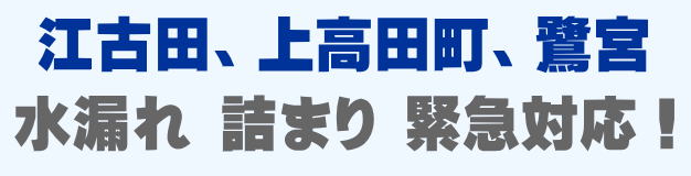 江古田、上高田町、鷺宮での水の困った即解決!急な水道トラブルに緊急でかけつけ訪問し、蛇口の水漏れ、トイレ詰まり、排水の溢れ、タンクの故障など修理いたします。